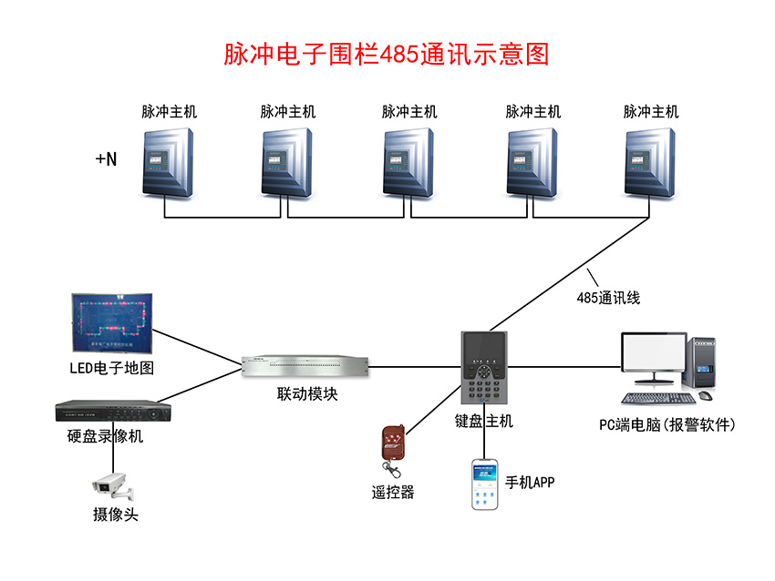 脈沖電子圍欄報(bào)警系統(tǒng)示意圖——485通訊