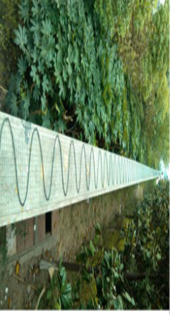 在草坪下埋設振動傳感光纜時,如果該區域已經鋪上草坪,應先將需要鋪設振動傳感光纜的周界區域的草坪用草坪切割機鏟起。周界區域寬度應不小于1.2米,如須提高警戒級別,可增加周界區域的寬度。草坪下面的土地應是土質較為硬而緊密的泥土,如果是水分較多,軟而松散的土質會吸收振動,造成設備性能下降。在土層的表面沿周界方向迂回平行鋪設多道振動傳感光纜,光纜間隔距離為25cm,即1.2米寬的區域應平行鋪設5道振動傳感光纜,如圖。振動傳感光纜應平直、緊密地附著在土層表面,可采用Φ5的鋼絲折彎成如圖所示的線卡子,每隔50cm用線卡子將振動傳感光纜緊壓在土層上,但應注意避免因壓力過大造成光纜變形。固定好光纜后,將草坪平鋪在上面,鋪設厚度5—10cm為適,鋪設太深靈敏度太低,不利于報警信息識別。應保證草坪接合處緊密,以避免振動傳感光纜外露。